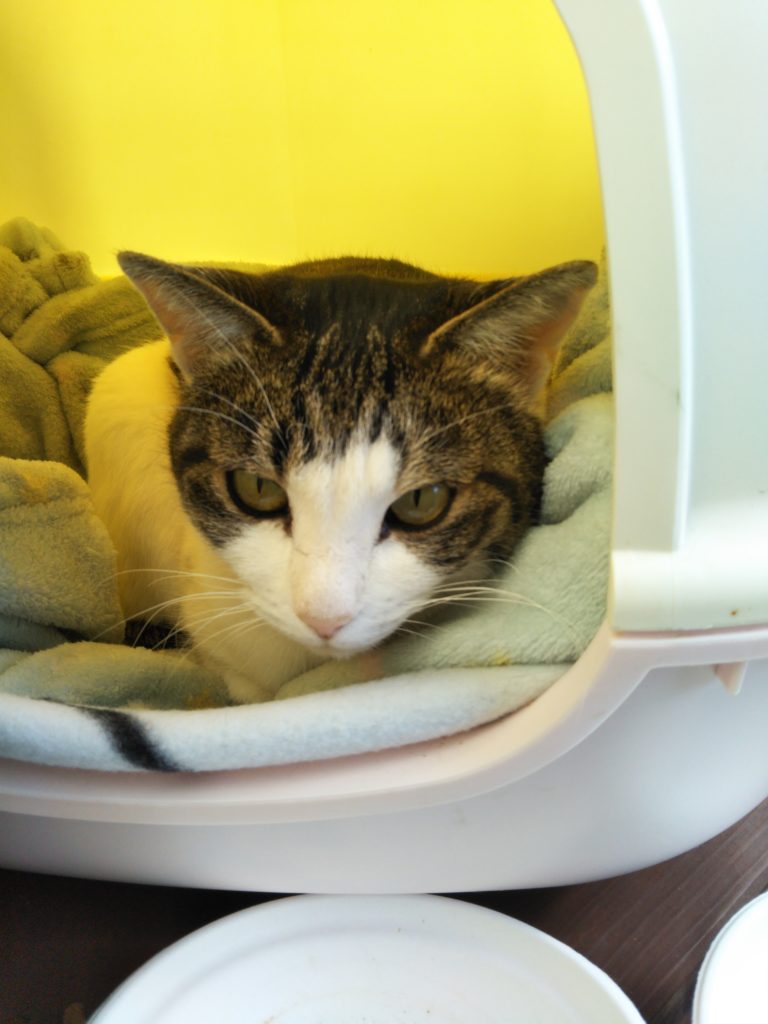 約12年間、地域ネコとして頑張ってきたミルクですが、年齢のせいなのか最近ご飯を食べなくなり明らかに弱ってきました。